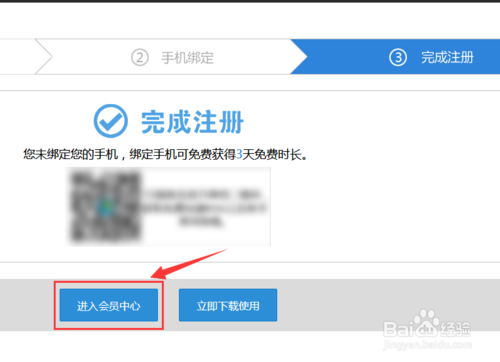 3、然后来到"完成注册"界面,点击界面的"进入会员中心",来到会员中心页面