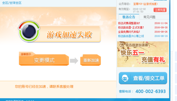 游戏加速失败,登录不上账号,显示已在加速中,要怎么解决?