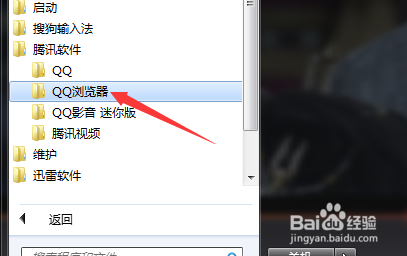 1、首先,点击桌面的中的 开始菜单中,点击腾讯软件 的选项,然后点击 qq浏览器 的选项。