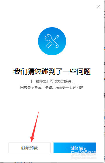 3、就会弹出了一个窗口中,点击 继续卸载 的按钮。