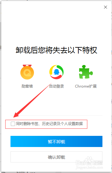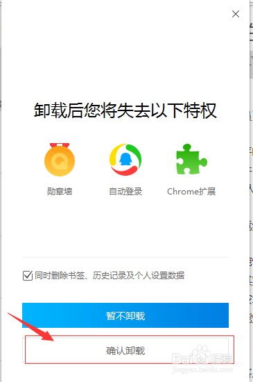 5、勾选上了的同时删除书签 的选项之后,点击 确定卸载 按钮。
