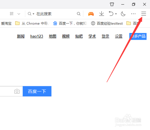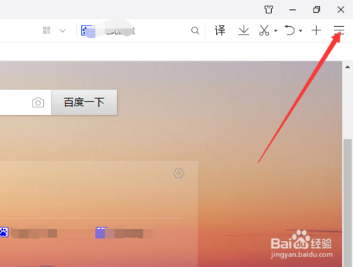 1、打开浏览器,然后点击软件右上角中的“三”。