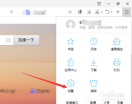 2、然后在弹出的设置界面中,点击图示位置的“设置”,进入浏览器设置界面。