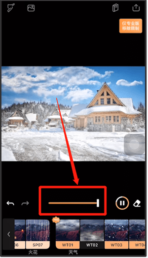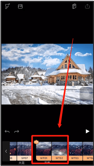 向左滑动,在天气分类下,选取第一个或者第二个效果。选择后,照片上方就会出现烟雾缭绕的效果。也可以调整上方的进度条,来增加烟雾的强度;