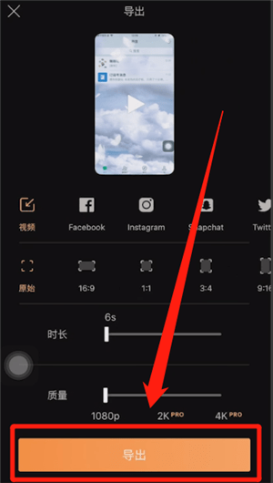 小伙伴们可以购买完成后,再设置视频的时长、质量以及画面比例等,点击底部【导出】即可。