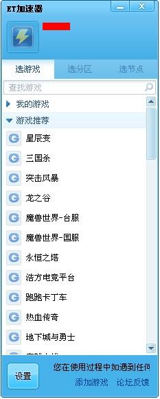 全新的ET能有效降低游戏用户在游戏中的延迟,减少掉线。优质的机房资源,高效的加速模式可有效解决网通、电信互通和大陆用户连接台服时的丢包、 断线等问题。 最新增加的语音功能让玩家在游戏的同时享受到便捷的沟通体验,ET是网游玩家的必备工具!