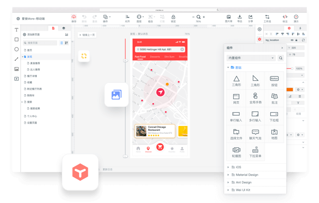 无论是 PM 从 0 到 1 绘制原型、还是设计师导入设计稿制作交互,都可以快速轻松完成可交互原型。