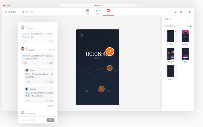 产品细节、新增需求、打点评论清晰可见。制作者可以第一时间收到细节反馈,方便意见的统一修改。