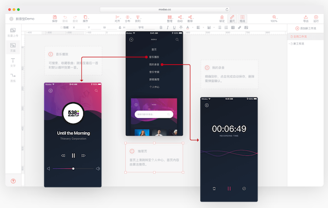 墨刀是一款强大的原型设计与协同工具,借助墨刀,产品经理、设计师、开发、销售、运营及创业者等用户群体,能够搭建为产品原型,演示项目效果。墨刀同时也是协作平台,项目成员可以协作编辑、审阅 ,不管是产品想法展示,还是向客户收集产品反馈,向投资人进行Demo展示,或是在团队内部协作沟通、项目管理【软件特点】