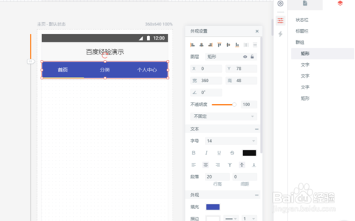 制作里布导航栏,从左侧“组件”栏目中找到底部组件,拖入应用之中,大小和样式可以自行修改。然后拖入三个导航标签,修改标签的位置和名称。至此完成底部导航栏的制作。