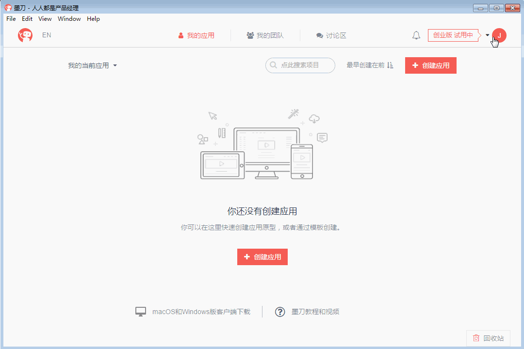 墨刀教程:如何快速制作一个App首页原型?创建应用
