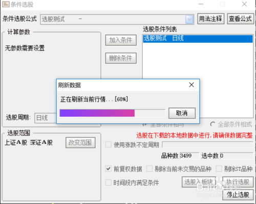 11、计算完成后,日线的收盘价大于250均线的个股就选出来了