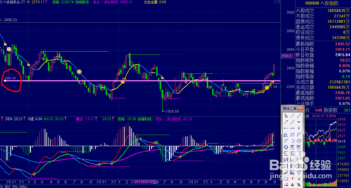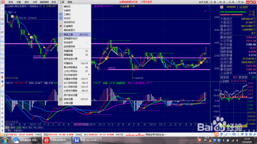 1、打开通达信软件,转到K线图。点击【工具】--【画线工具】