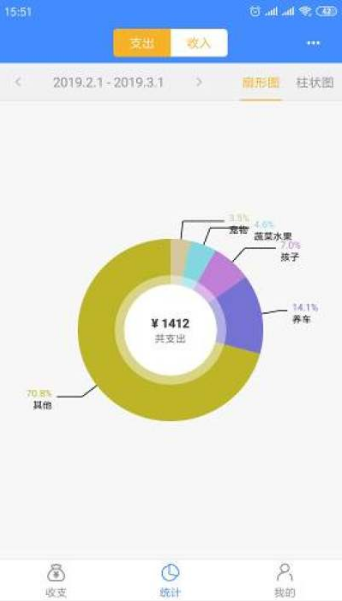 4、可按年月日的不同维度查看统计图表形式更直观哦。