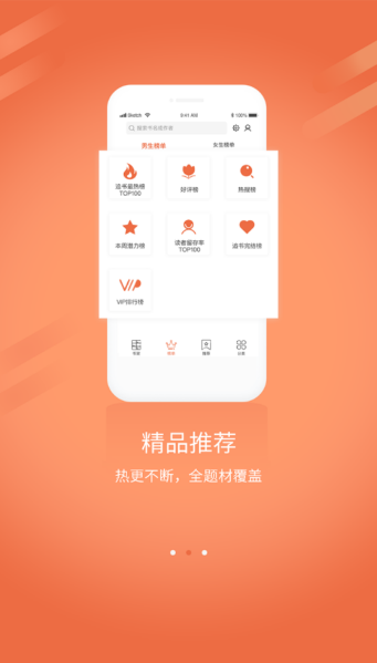 1、齐全的小说分类满足一切的阅读喜好;2、多样的不同排行榜单带您发现最热小说;