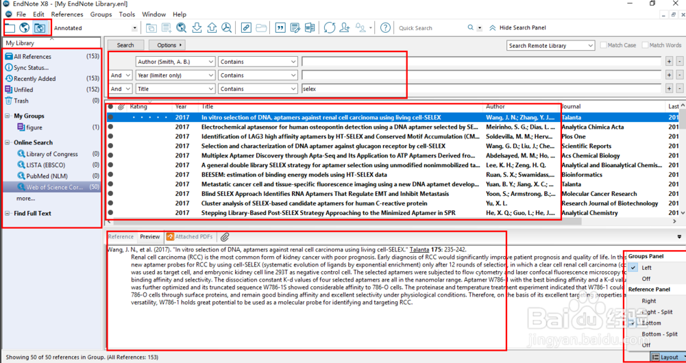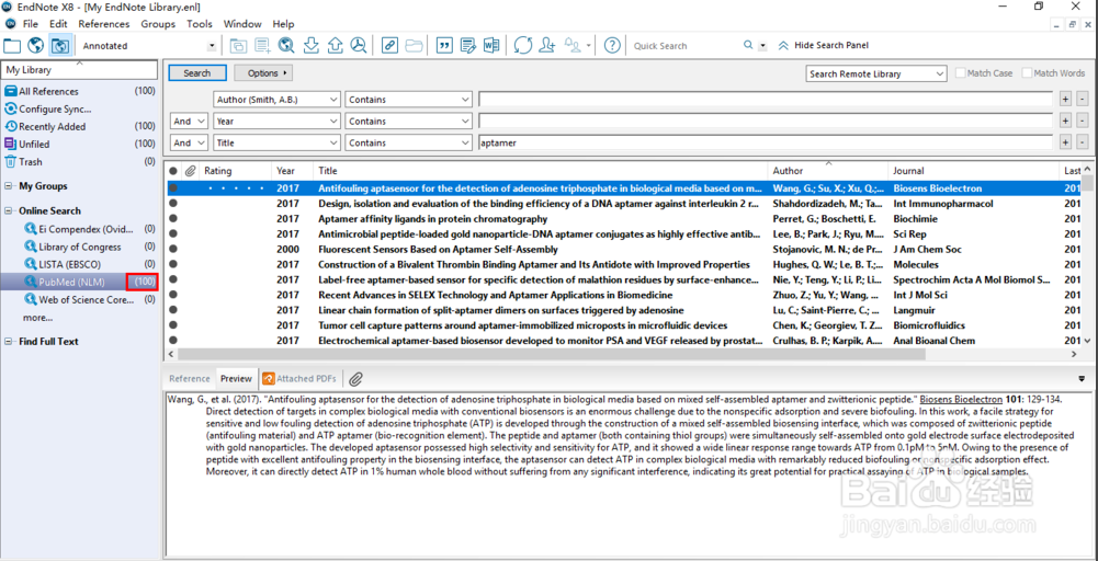 在线搜索文献: 直接从网络搜索相关文献并导入到Endnote的文献库内。建立文献库和图片库: 收藏,管理和搜索个人文献和图片、表格。