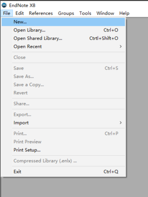 创建文献数据库打开EndNote,首先需要新建文献数据库文件,File- New- 选择文件夹,如下图所示: