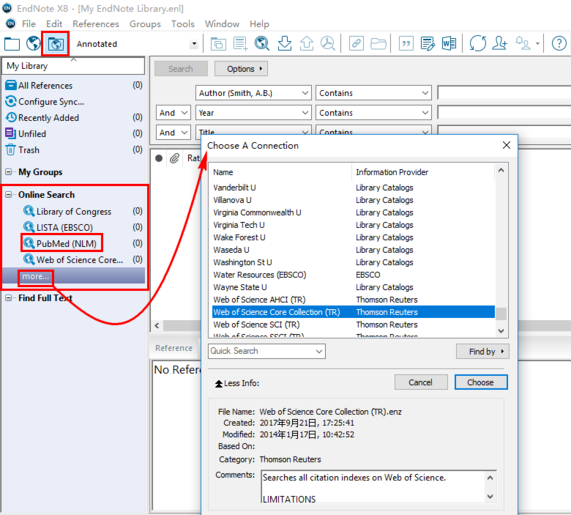 ⑵EndNote 能直接连接上千个数据库,并提供通用的检索方式,为您提高了科技文献的检索效率。