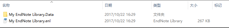 选择保存路径后点击确定即完成数据库文件创建,创建后生成两个文件:MyEndNote Library.enl 和My EndNote Library.Data 文件夹。