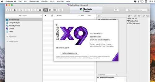 EndNote 是一款主流文献管理软件,有数以百万计的研究人员、学生和图书管理员使用,它能方便地扩展任何语言参考书目,允许你创建任意大小的文献库。通过EndNote可进行文献批量下载和管理、写作论文时添加索引、分析某篇文献的引文索引、分析某领域或者学术课题的经典文献地位等。EndNote X9 集成了目前国际期刊的参考文献格式有3776 种,写作模板几百种,涵盖各个领域的杂志。您可以方便地使用这些格式和模板,如果您准备写SCI稿件,更有必要采用此软件。EndNote X9 目前在有全球数百万研究人员、图书管理员和学生在使用这个书目管理和写作软件。研究人员通过EndNote可以在电脑和网络账号之间自由添加或者移动文件附件,查看和批注PDF 文件,并自动更新参考文献。