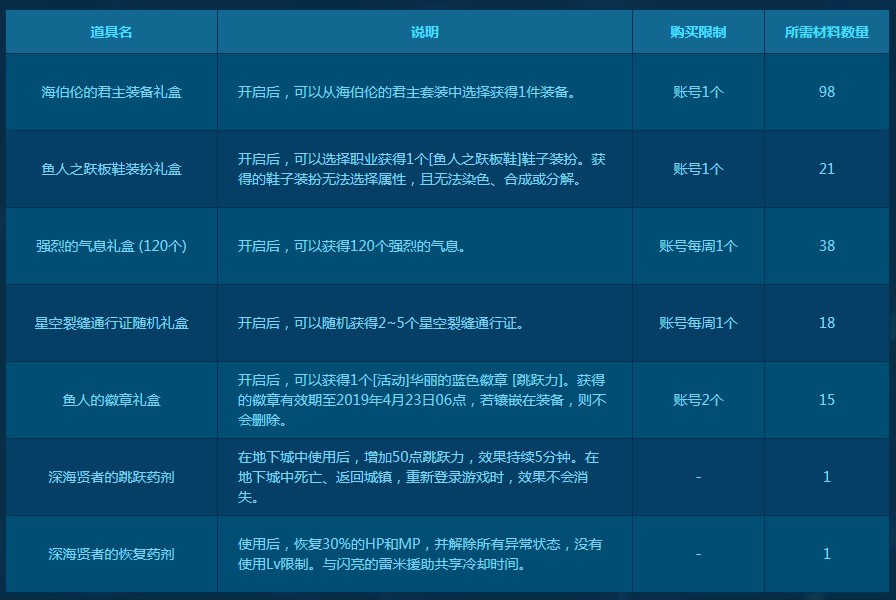 玩家完成一次【鱼人之海的女儿】后,就能得到当天的【海洋之珠】了,该道具可以兑换海伯伦以及其它道具。