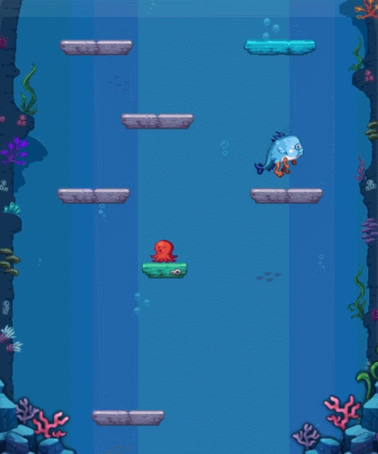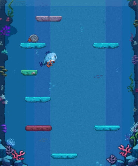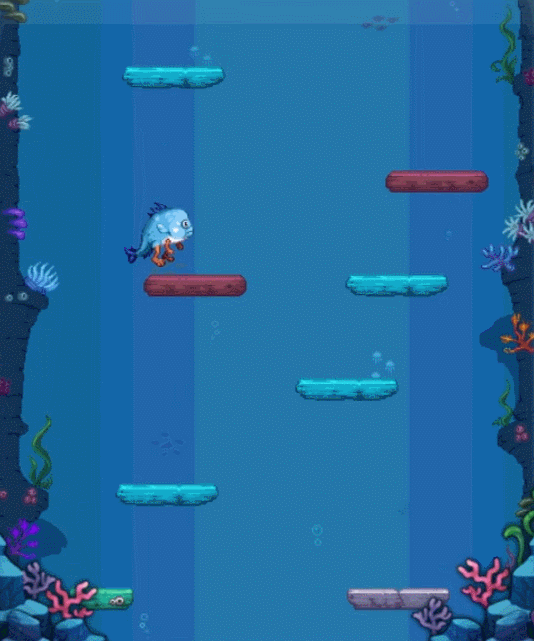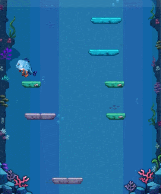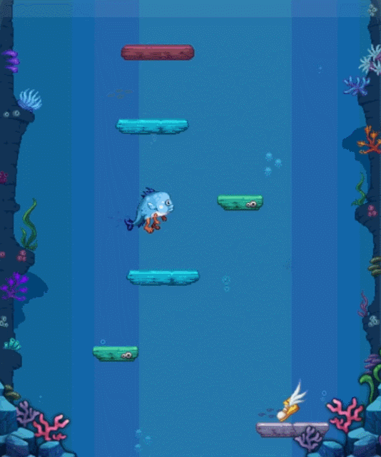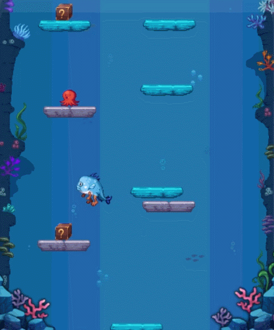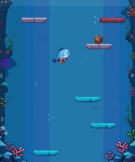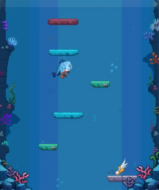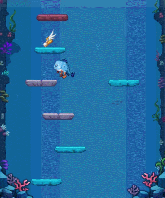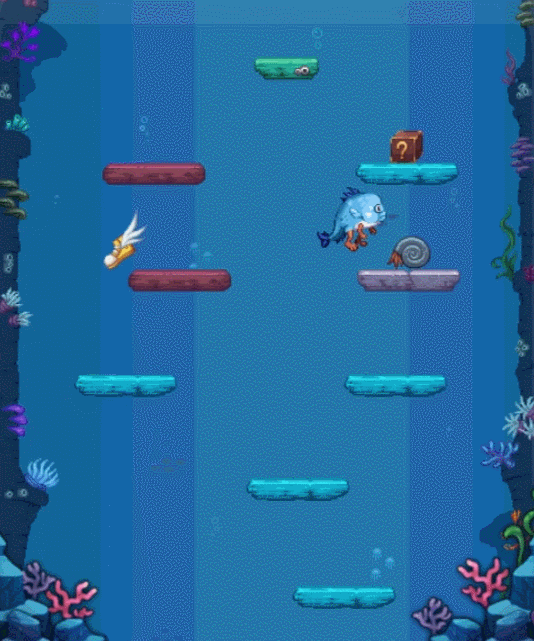 玩家会变身成为小鱼人然后参与小游戏,这个游戏类型就是不停的往上跳跃,然后获取奖励。