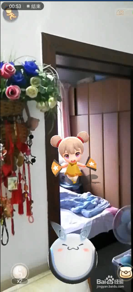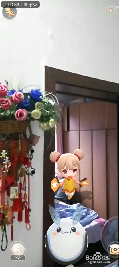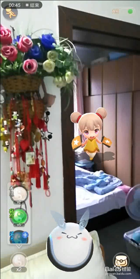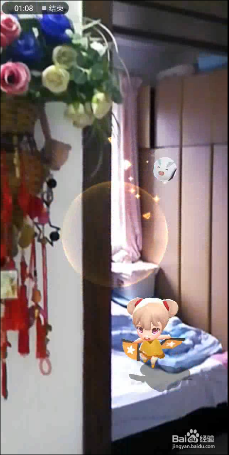 接下来,我们把手机面前移动,靠近自己,这个时候,我们就调整了角度,把妖怪调整到我们面前了。