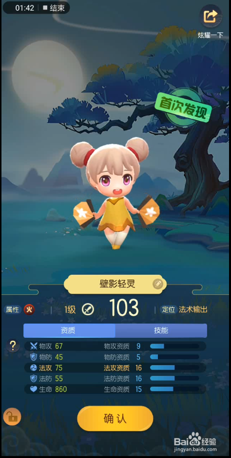 这时候,就出现了妖怪的名称,我们封印住的妖怪叫壁影轻灵。是我们首次发现的妖怪。我们点击下方的确认。