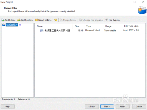 在弹出的“项目文件夹(Project File)”中,点击“添加文件(Add File)”,选择需要翻译的文件后,点击“下一步(Next)”。
