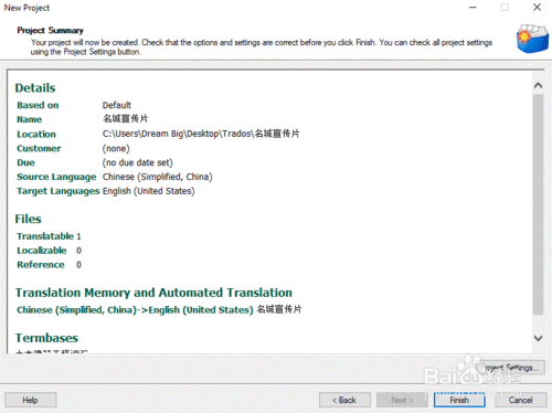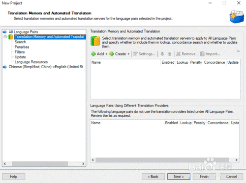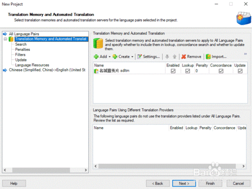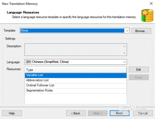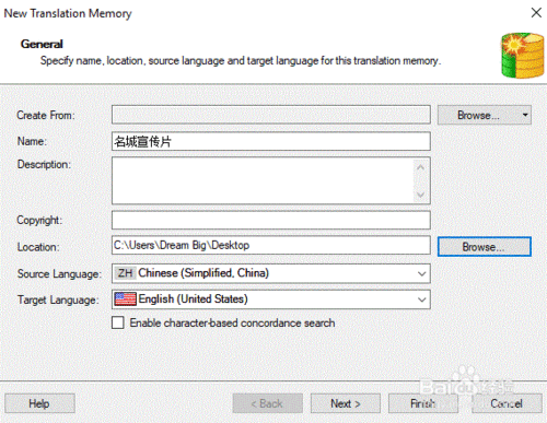 编辑记忆库的相关信息:名称、保存位置、源语言、目标语言等,设定好后,点击“下一步(Next)”。