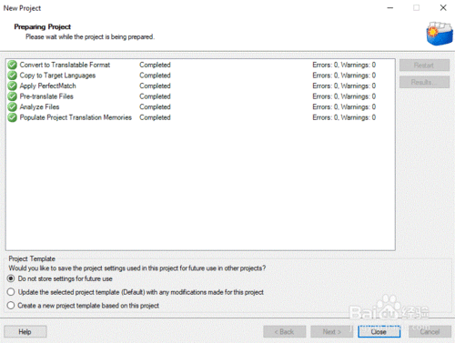 当Trados完成对项目的准备后,点击“关闭(Close)”。