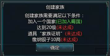 1、创建家族需要玩家等级到达20级,并加入国家