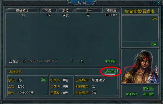 1、创建成功后,家族族长可以在家族界面中点击“成员审核”批准加入的成员