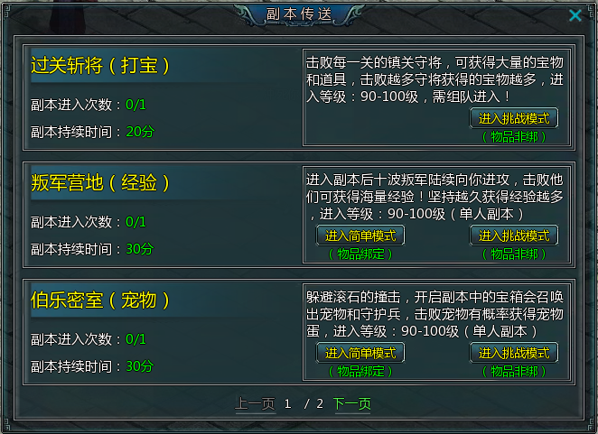 英雄挑战副本,也叫做装备副本。这个副本的怪物死后会给予玩家大量装备。推荐在副本使用幸运卷轴