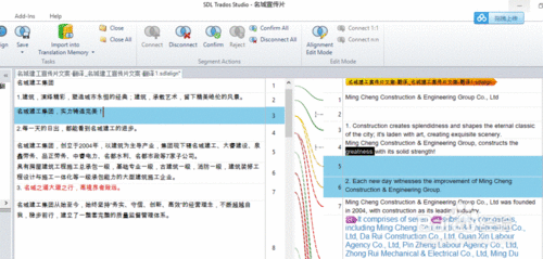 如何在Trados中编辑对齐文件将鼠标放在源文件各行,即可选中/加亮目标文件中与之对齐的翻译行;