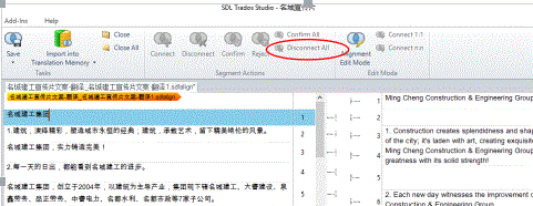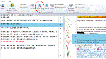 若发现很多对齐出错,也可点击“取消全部连接(Disconnect All)”,而后手动连接几个关键行后(请参照步骤4),之后点击“重新对齐(Realign)”,这样会免去我们逐行调整编辑的麻烦,会节省时间。如果重新对齐后,效果仍不理想,错误依旧很多,我们则需要逐行调整。
