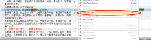 至此,已经在术语库中添加了新词汇。在以后的翻译中,如果遇到源词汇,术语识别功能会自动向我们建议翻译的词汇。