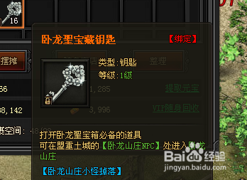 钥匙是用来在卧龙庄主出现后,开启带龙字的宝箱的,每5把钥匙开启一个箱子。另外蓝色的箱子不需要钥匙