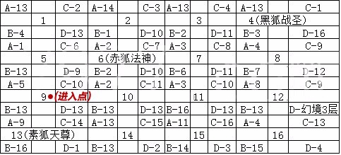 通常来说进入到传奇盛世幻境2层后会在第9块小地图中出现,而3个BOSS分别在4(黑狐战圣)、6(赤狐法神)、13(素狐天尊),而传奇盛世幻境2下3的NPC则在第12块小地图中。