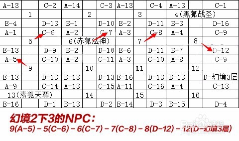 幻境2下3的NPC:9(A-5) - 5(C-6) - 6(C-7) - 7(C-8) - 8(D-12) - 12(D-幻境3层)【 ↖ ↗ ↗ ↗ ↘】点击右下角门NPC即到了 里面有三只BOSS【魔龙教主】、【石像鬼王】、【异世树魔】