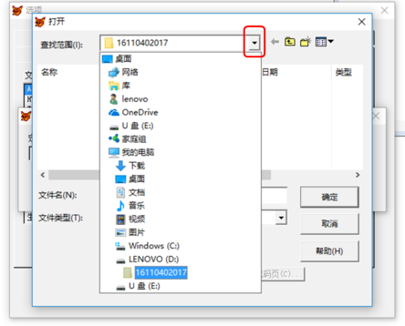 注意这一步不要急着按确定,因为你还没有找到自己的文件。正确的是,点击右边的曲云,如图。