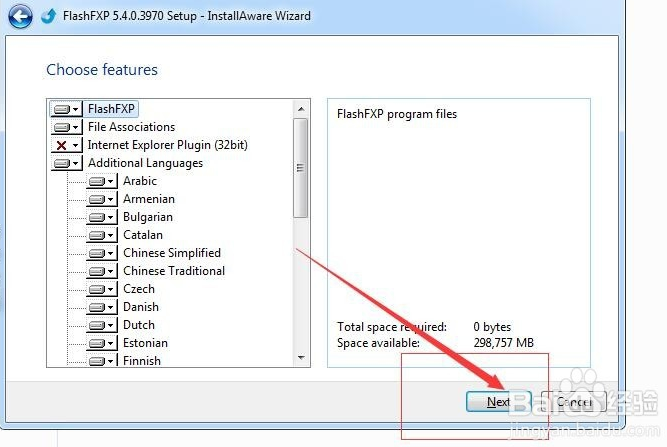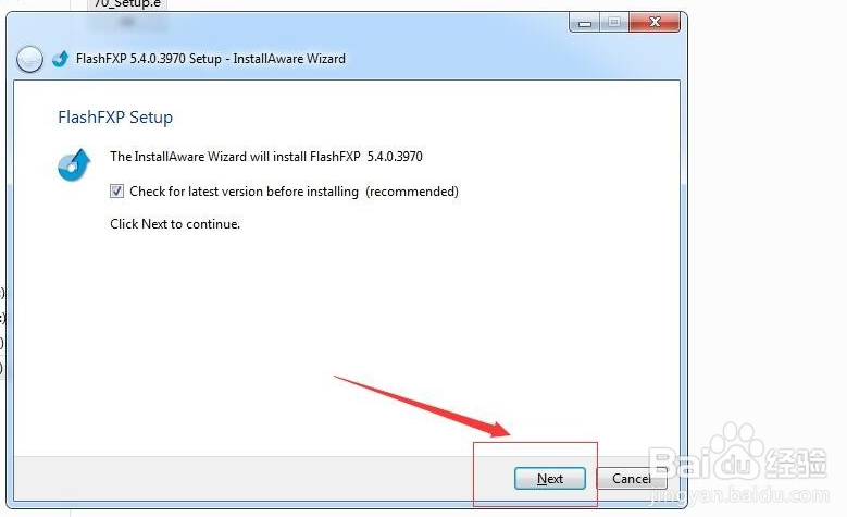 使用双击FlashFXP安装文件,会出现安装程序的对话框,前面几个步骤直接点击“next”即可,需要注意的地方,我会专门拿出来说明的。