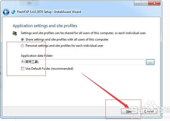 FlashFXP工具默认的安装位置是C盘,所以这里需要注意,把安装位置改成你想要安装的为啥就行。