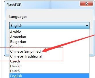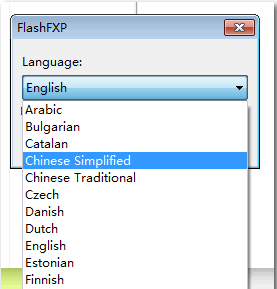 FlashFXP工具默认的语言是“English”,这里可以调为简体中文,当然也可以不调,直接使用,这个主要看个人能力和喜好了。