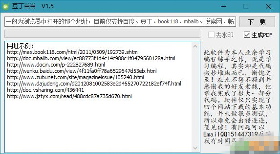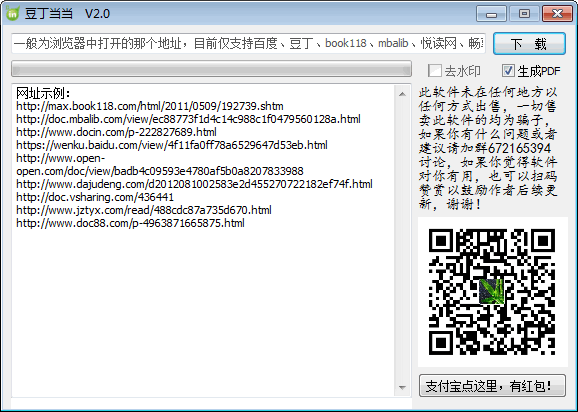 豆丁文档下载器(豆丁当当)是一款非常实用的网络文档下载软件,用户通过这款软件可以无限制下载百度文库、豆丁文库、Book118上收费的文档资料。而且,该软件的操作方法非常简单,用户只需要将文档链接复制到该软件的下载框内即可。