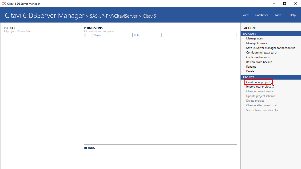 1、启动 Citavi DBServer Manager。您可以在\ Citavi 6 \ bin 文件夹中找到该程序。单击创建新项目。