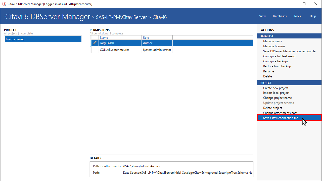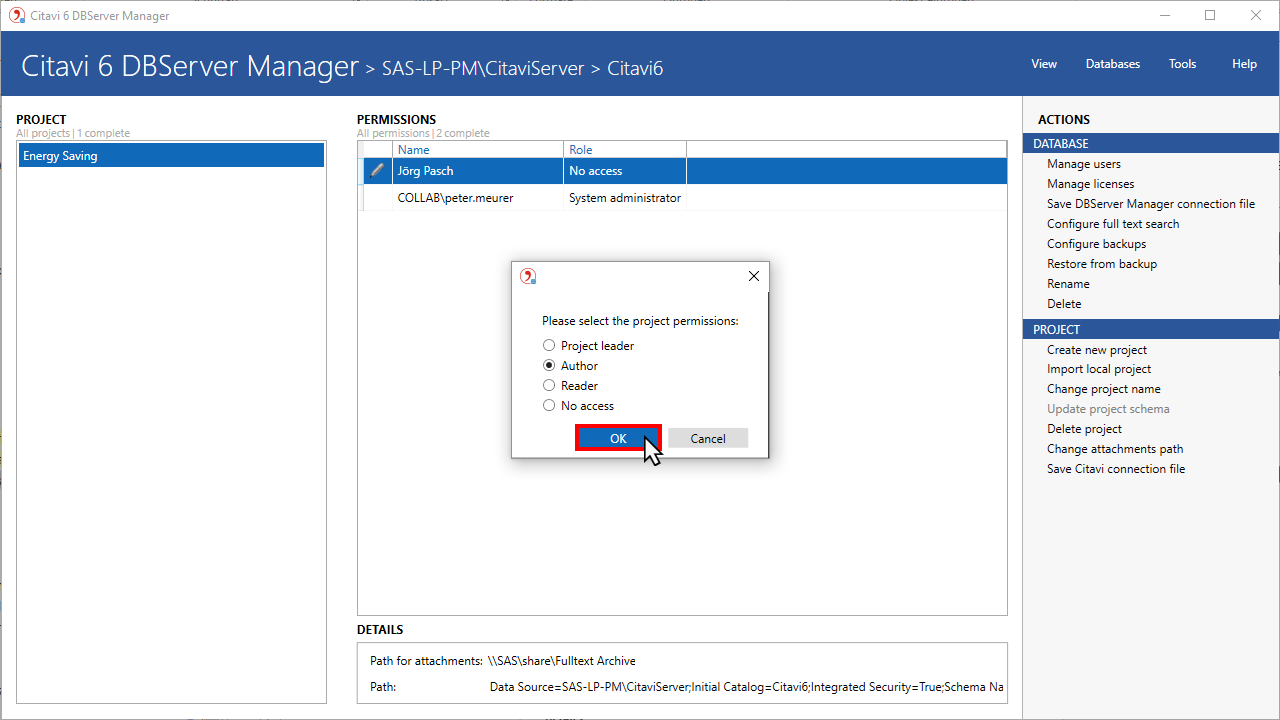 小团队只需要把数据保存在共享磁盘里即可,Citavi还有一个DBServer 版本支持团体协作,比如撰写期刊论文,给每个团队成员不同的编辑或只读权限即可。
