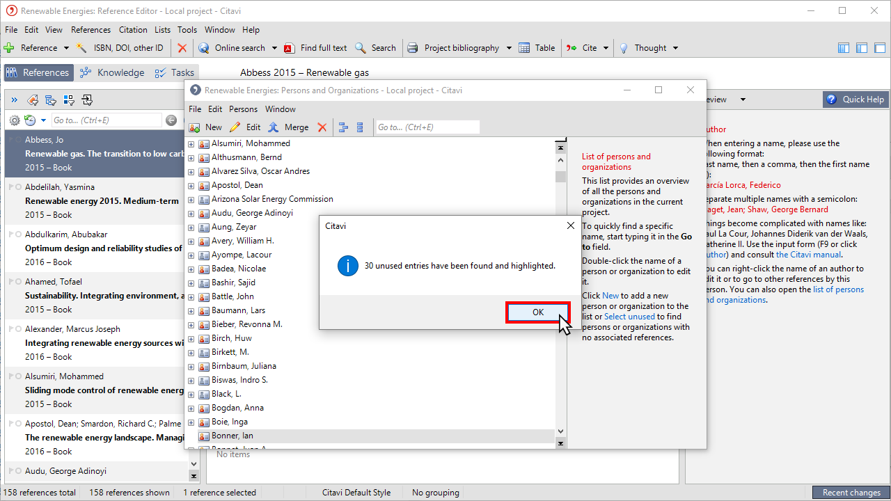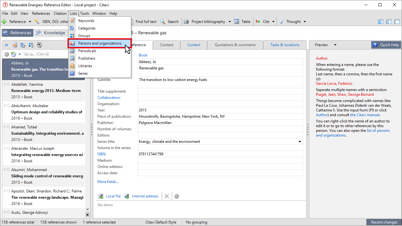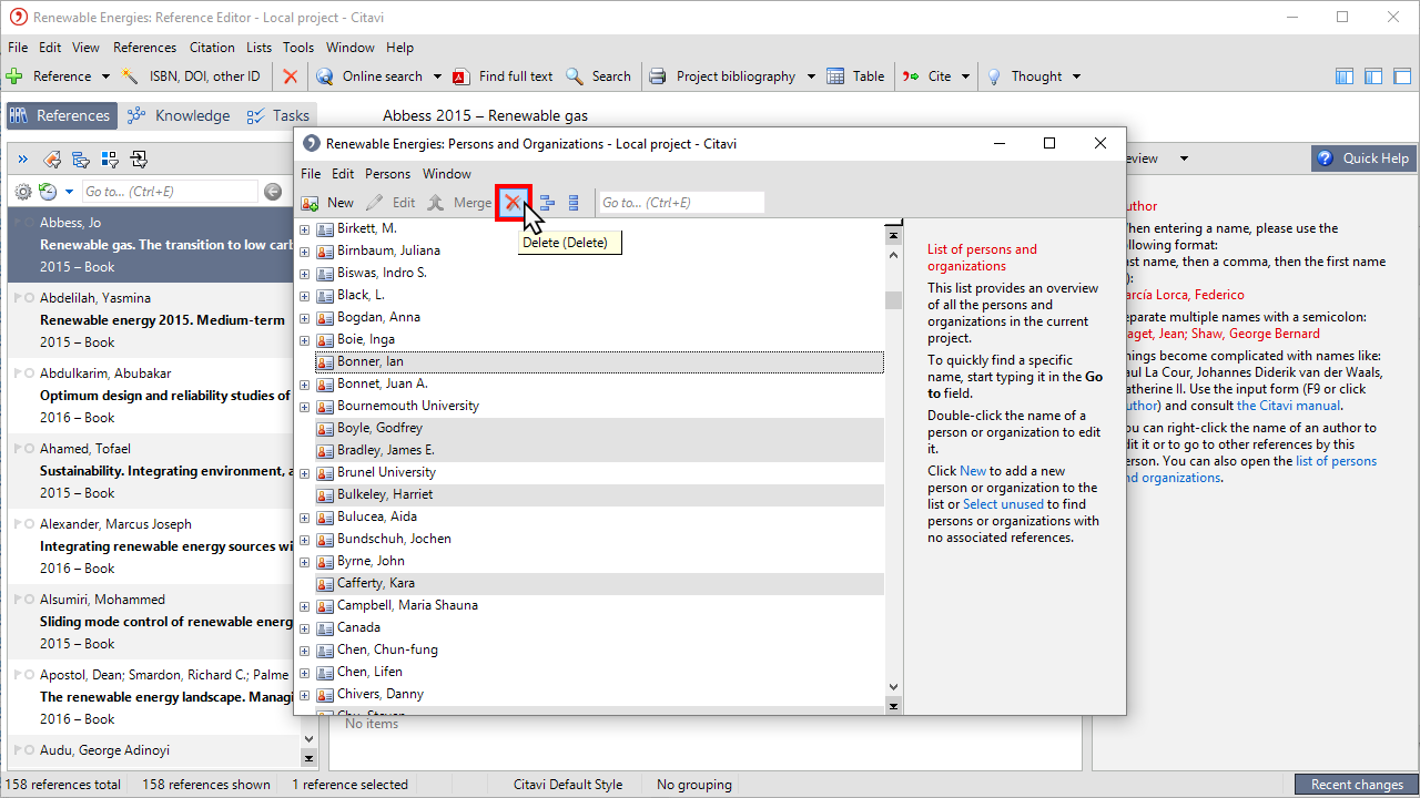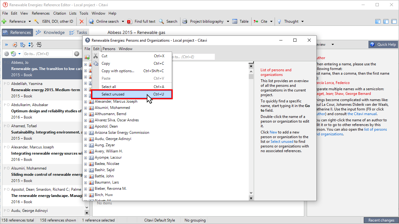 二、Citavi6删除未使用的使用的人名和组织名称的方法