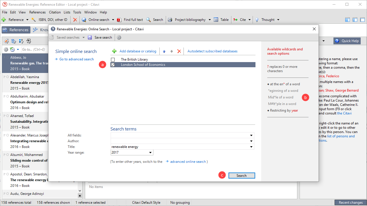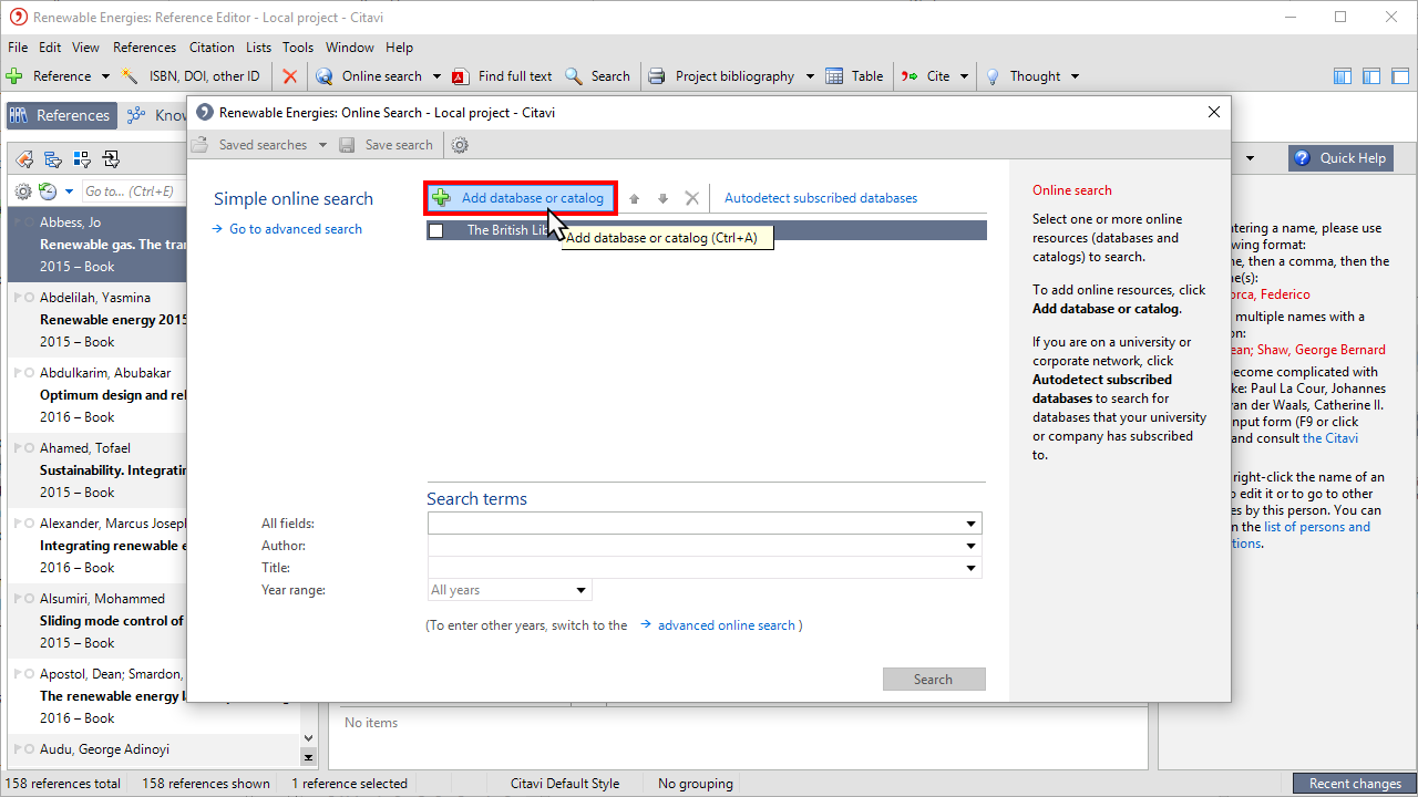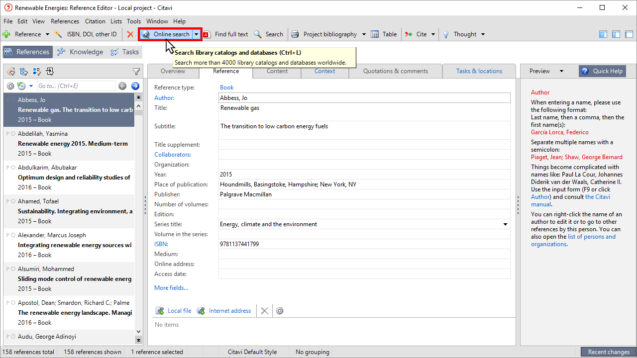 可以从 Citavi 内直接搜索您的图书馆目录,并且我们会不断增加额外的在线资源。