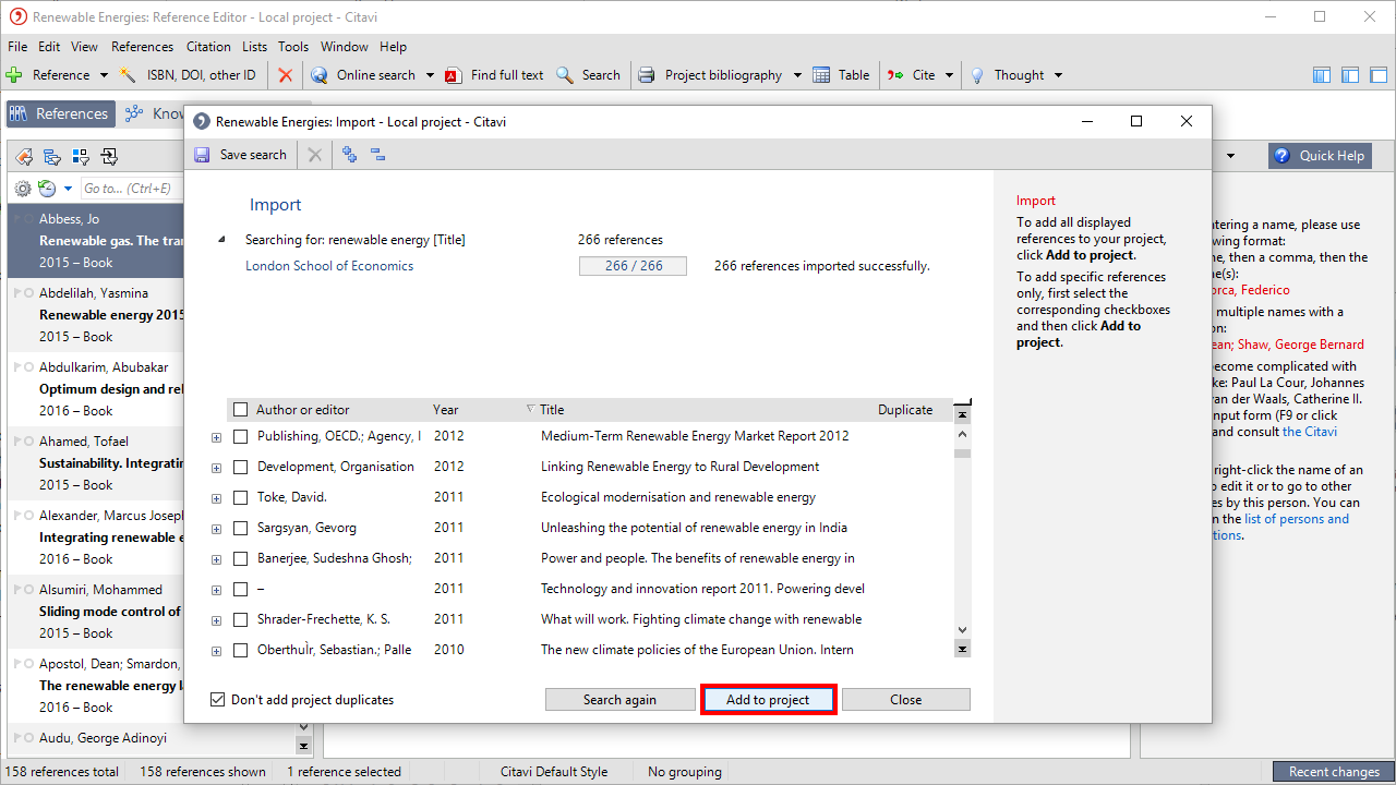 5、Citavi 显示结果。单击添加到项目,以一次导入所有引用。